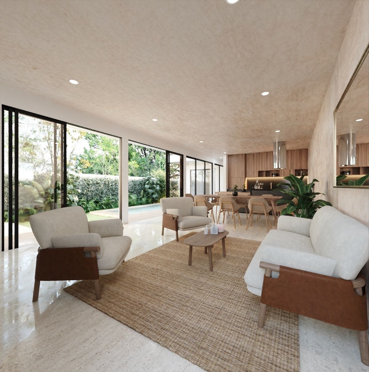 Esta encantadora casa te invita a experimentar un ambiente de claridad. La visión del arquitecto se tradujo en un espacio donde la naturaleza, acabados de madera, roca y la arquitectura se entrelazan de manera fluida. Desde el momento en que entras, te envuelve una sen-sación de serenidad con su hermosa entrada de luz y lineas perfectas, mientras el interior se fusiona con el exterior.